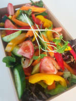 With mesclun, carrot, cherry tomato, cucumber, capsicum, lemon & olive oil.
