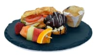 Your choice to have this served individually packaged or in a sharing box. Both options consist of fruits or berries, fresh cream, jam and maple syrup.
