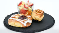 Individually packaged. Each box contains: ● Assorted pastry (2pp) ● Fruit salad in cup (1)