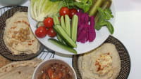 Serves 4 to 6.This platter includes ful mudammas (Egyptian fava beans), baba ghanoush, hummus, assorted pickles, fresh vegetables and olives, served with fried and fresh bread