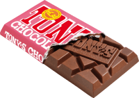 Creamy milk chocolate with bits of sticky, sweet nougat made from honey and almonds.