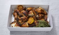 30 succulent boneless chicken thighs marinated and full of flavour. Delivered warm & ready to eat.