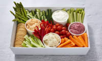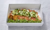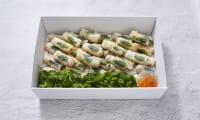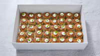 Something to suit everyone's tastes: ● 4 x petite chicken schnitzel rolls ● 4 x chicken rice paper rolls (gf) ● 4 x vegan rice paper rolls (v, vegan, df, gf) ● 4 x vegetarian rice paper rolls (v, vegan, df, gf) ● 6 x chicken triangle sandwiches ● 3 x pieces of chicken wraps ● 3 x pieces of vegan wraps (v, vegan) ● 6 x pieces of mini salmon bagel ● 3 x pieces of cucumber finger sandwich (v) ● 3 x pieces of egg finger sandwich (v) ● 1 x Sweet Chilli dipping sauce **Order cut-off for this one is midday 2 days prior.