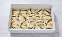 A selection of 24 premium biscuits (Coffee style YoYo, Traditional style YoYo, Petite Florentines, Jam Hearts, Viennese Eclairs, Jam Fancies, Anzacs, Honey & Almond, Lemon Daisy, Choc Coconut & Almondines)