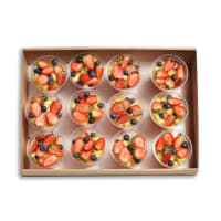 Small Platter includes: Toasted coconut, rolled oats, activated seeds, walnuts, manuka honey, low fat sweet yogurt, seasonal berries (15pcs) | Large Platter includes: Toasted coconut, rolled oats, activated seeds, walnuts, manuka honey, low fat sweet yogurt, seasonal berries (30pcs). Note: Our platters are fixed