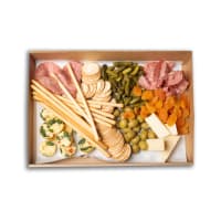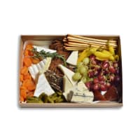Small Platter includes: Chefs selection of hand crafted cheese, water crackers, grapes, cornichones, grissini, quince paste, dried fruit, pickles (feeds 2-5 people) | Large Platter includes: Chefs selection of hand crafted cheese, water crackers, grapes, cornichones, grissini, quince paste, dried fruit, pickles (feeds 6-9 people) Note: Our platters are fixed.