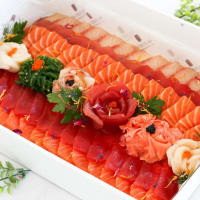 Salmon, yellowfin tuna & hiramasa kingfish sashimi, waakami seaweed salad, soy sauce & wasabi (feeds 10-12 people)