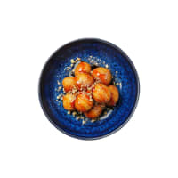 Ten donut balls smothered in honey, walnuts, cinnamon sugar.