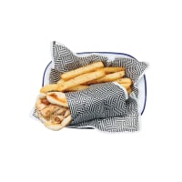 Chicken or Beef patties or Lamb w/ chips, tzatziki, tomato, onion, parsley, paprika.