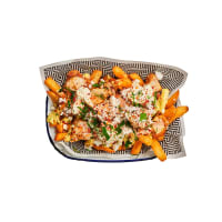 Yia Yia’s chips loaded with chargrilled chicken, feta, mustard mayo, tzatziki, Bukovo flakes and fresh herbs.